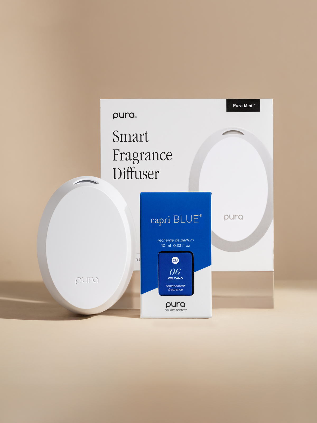 This set includes one Capri Blue Volcano fragrance vial and a Pura Mini™ smart home diffuser.